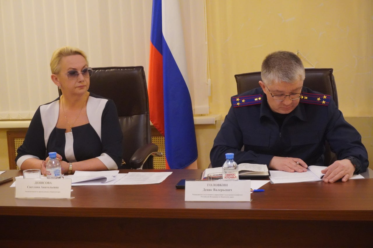 На минувшей неделе руководитель следственного управления Следственного комитета Российской Федерации по Пермскому краю Денис Валерьевич Головкин провел консультативный совет по делам несовершеннолетних и лиц из числа детей-сирот и детей, оставшихся без попечения родителей. На совете также присутствовали сотрудники аппарата, уполномоченный по правам ребенка в Пермском крае С.А. Денисова, и.о. заместителя министра труда и социального развития Пермского края Е.Н. Чиркова, представители ГУ МВД России по Пермскому краю, общественных организаций и образовательных учреждений.