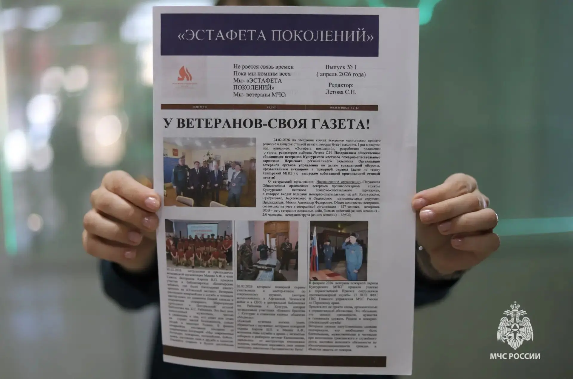 «Не рвется связь времен, пока мы помним всех. Мы эстафета поколений. Мы — ветераны МЧС» — эти проникновенные строки открывают первый выпуск новой газеты общественного объединения ветеранов Кунгурского местного пожарно-спасательного гарнизона. Издание с символичным названием «Эстафета поколений» будет выходить раз в квартал и станет связующим звеном между поколениями, хранителем традиций и летописцем героических страниц службы.