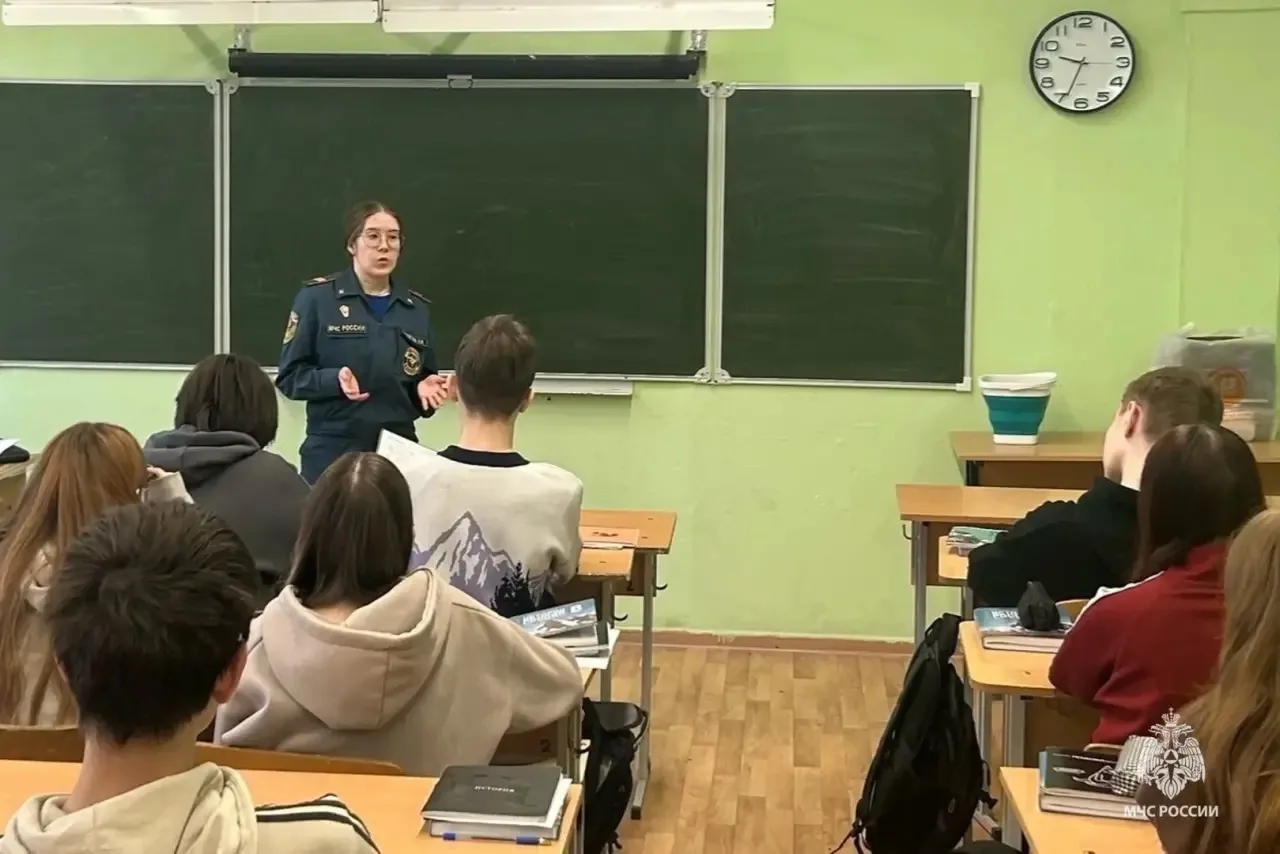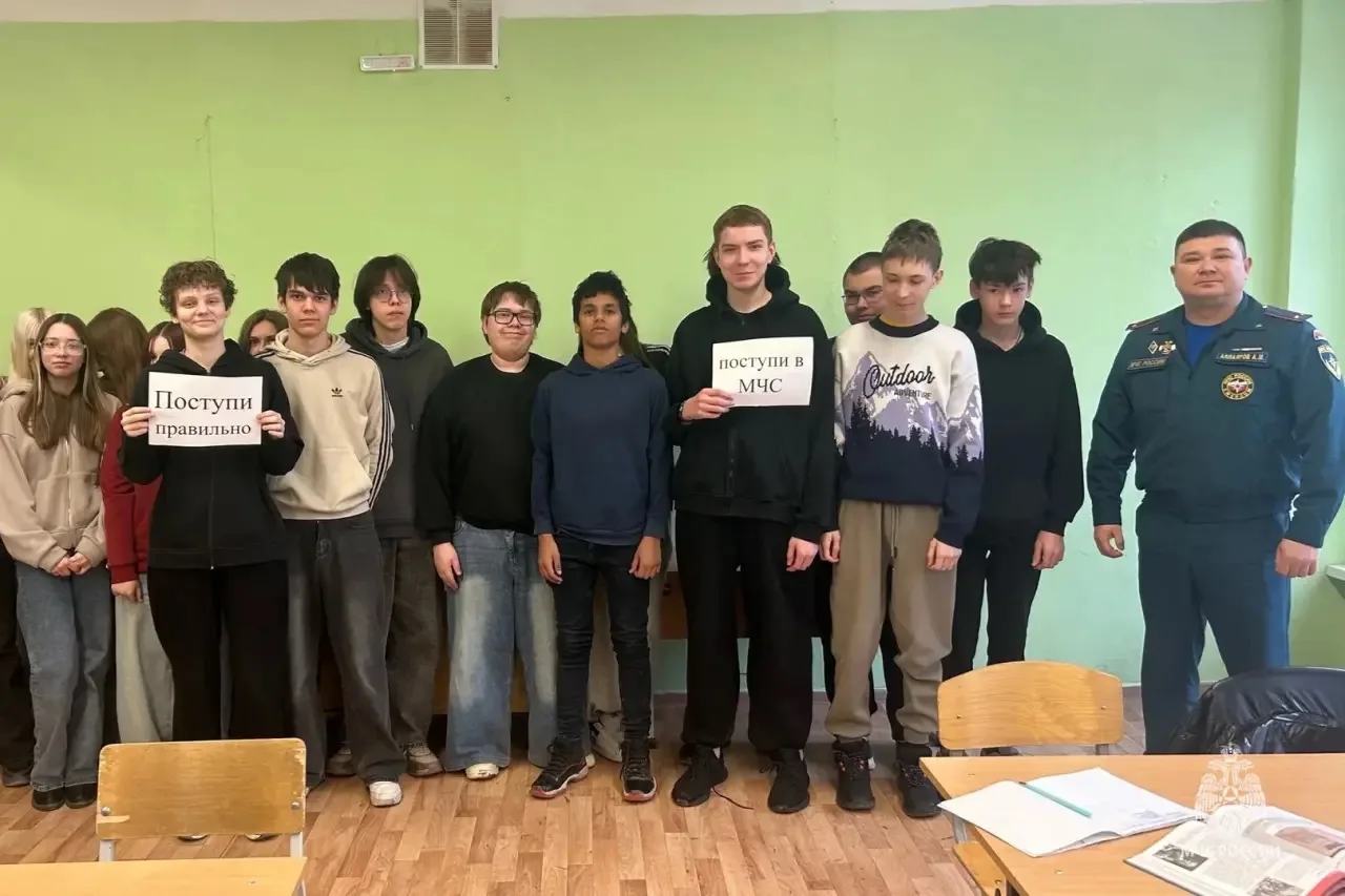 Сотрудники чрезвычайного ведомства продолжают знакомить школьников с профессией спасателя! В рамках профориентационных встреч ребята: