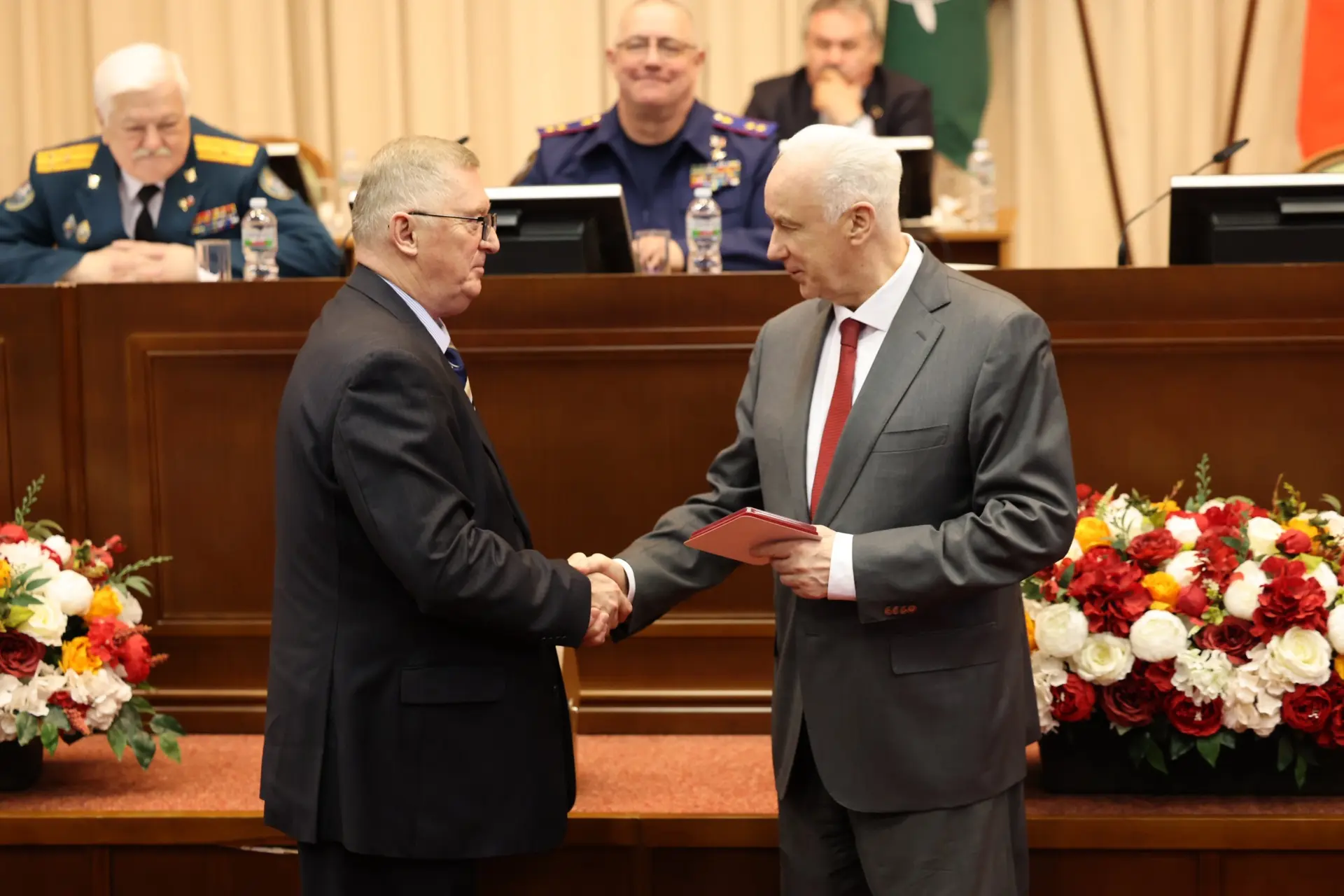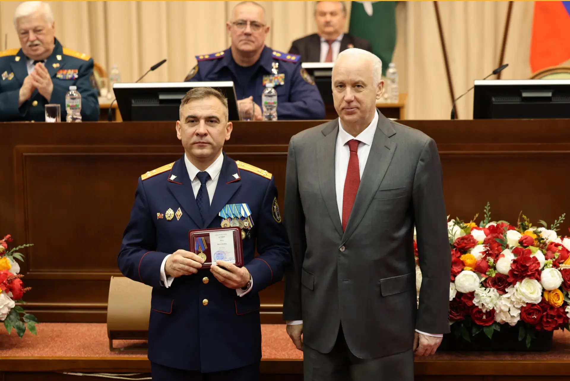 Председатель СК России вручил ведомственные награды ряду представителей ветеранского движения. Он поблагодарил членов ассоциации за поддержку бойцов в зоне специальной военной операции, сбор гуманитарной помощи вместе с курсантами и кадетами образовательных учреждений СК России, содействие в работе ведомственной академии в Луганске, работу в области духовно-нравственного воспитания молодежи и сохранения лучших традиций российского офицерства.