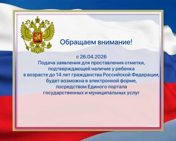 Информация о предоставлении отметки на свидетельство о рождении детям до 14 лет