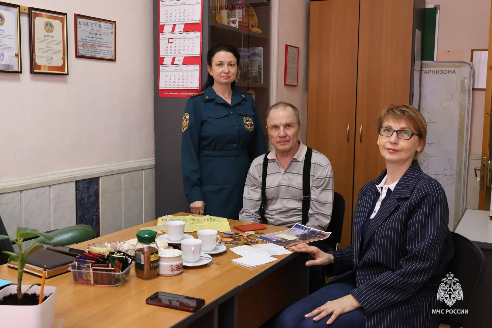 На встрече в Совете ветеранов председатель Олег Попов вручил Александру Калмыкову благодарственное письмо. Ветеран имеет множественные награды за участие в ликвидации последствий аварии на Чернобыльской АЭС. Свою задачу выполнил с честью.