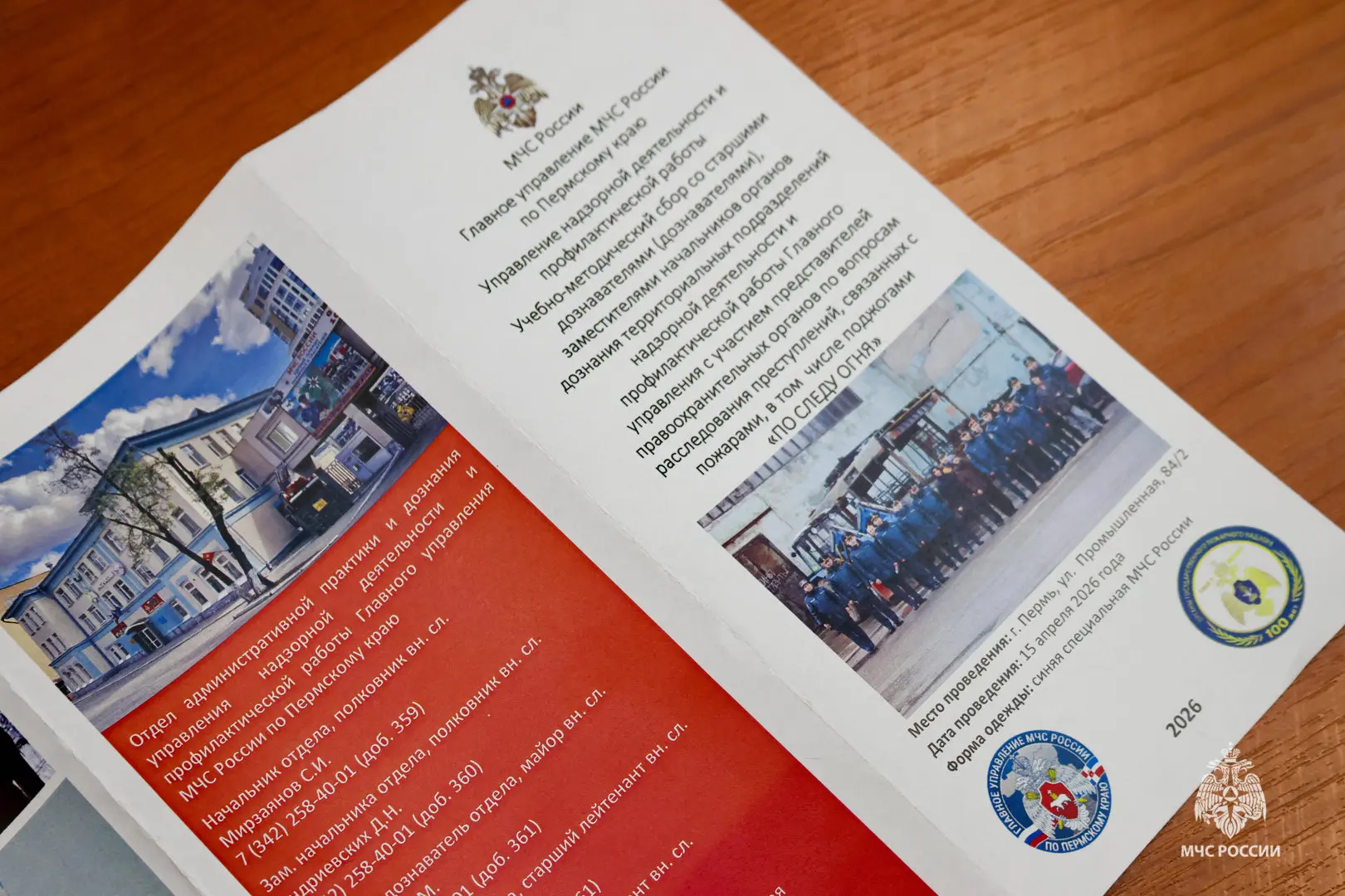 Главным управлением МЧС России по Пермскому краю совместно с испытательной пожарной лабораторией по Пермскому краю проведен учебнометодический сбор с дознавателями органов дознания государственного пожарного надзора, уполномоченными на проведение проверок сообщений о преступлениях, связанных с пожарами. На сборах участвовали представители краевых правоохранительных органов и экспертных учреждений. В ходе сбора были проведены теоретические занятия, которые в последующем были закреплены практической частью на учебном полигоне.