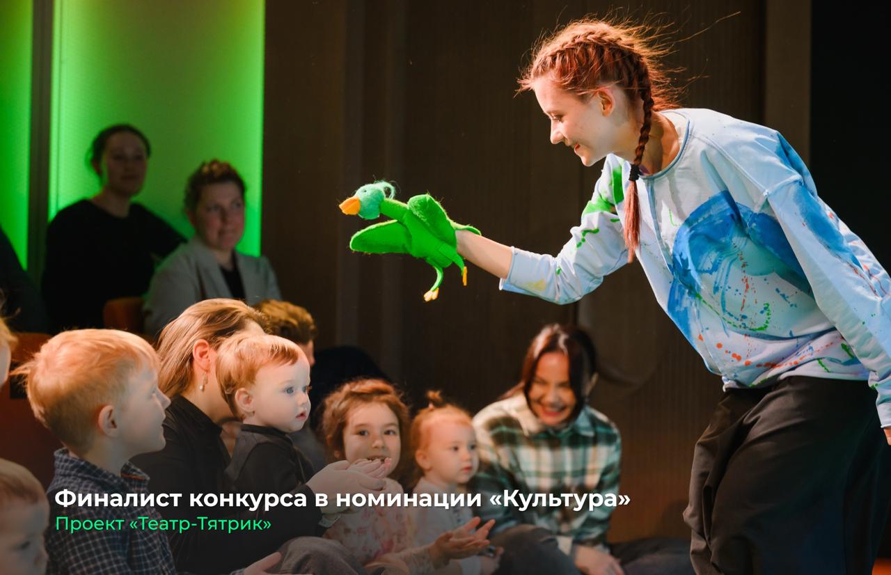 Еще один финалист — проект «Театр-Тятрик» Пермского академического Театра-Театра. Это новое пространство для детей и семей. За год команда театра выпустила 11 премьер, провела почти 1300 спектаклей, которые посетили 29 тысяч зрителей, включая детей, которым особенно нужна поддержка — в том числе 486 детей-сирот вместе с их опекунами. Кроме того, труппа организовала девять творческих мастерских и специальные занятия для ребят из братского Северодонецка.