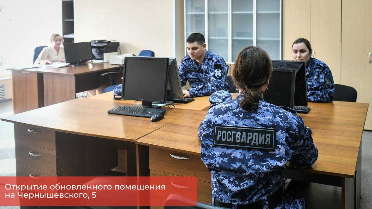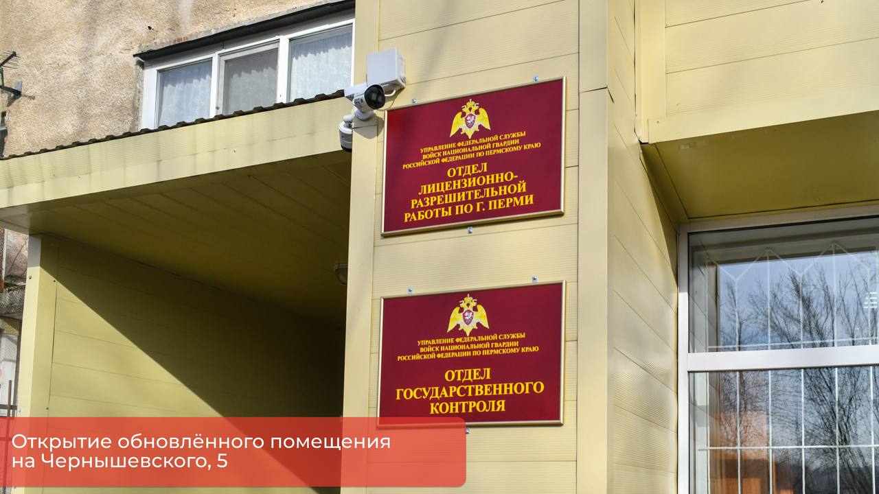 Федеральная служба войск национальной гвардии Российской Федерации на днях отметила 10летие со дня образования. В честь этой даты передали в пользование отремонтированное помещение на улице Чернышевского, 5. Здесь разместится отдел лицензионно-разрешительной работы по Перми. Мы полностью обновили сами помещения и входную группу, чтобы сотрудникам было удобнее работать, а жителям — обращаться за услугами.