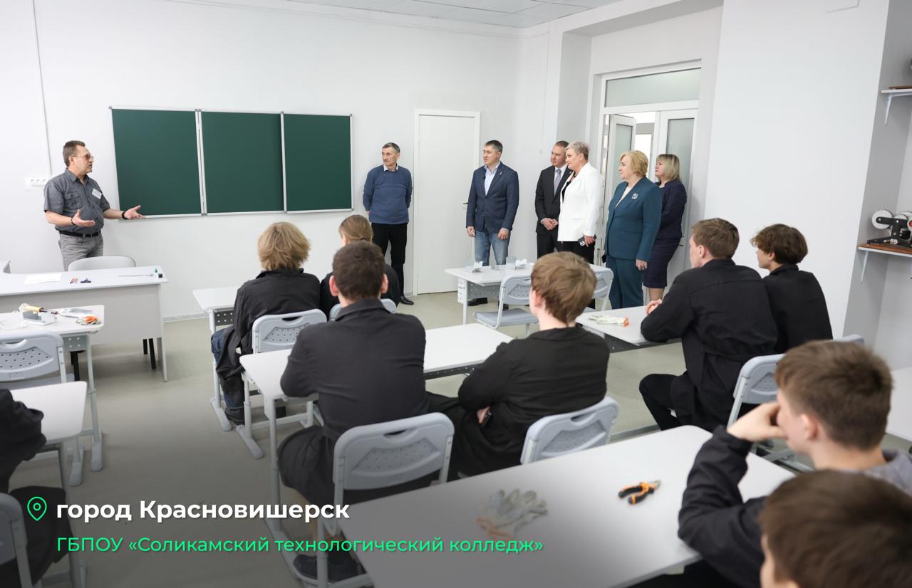 Проинспектировал недавно отремонтированный Соликамский технологический колледж. В прошлом году обновили классы, коридоры, актовый зал, общежитие, закупили новую мебель и учебное оборудование. Здесь готовят специалистов для лесной отрасли, в том числе мастеров, машинистов и электромонтеров. Пообщался со студентами — говорят, что для них особенно важна практика, которая проходит на предприятиях округа.