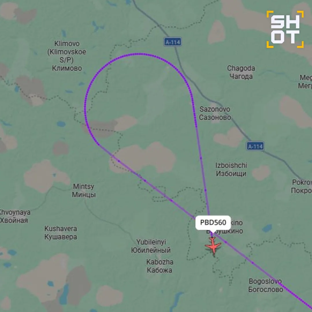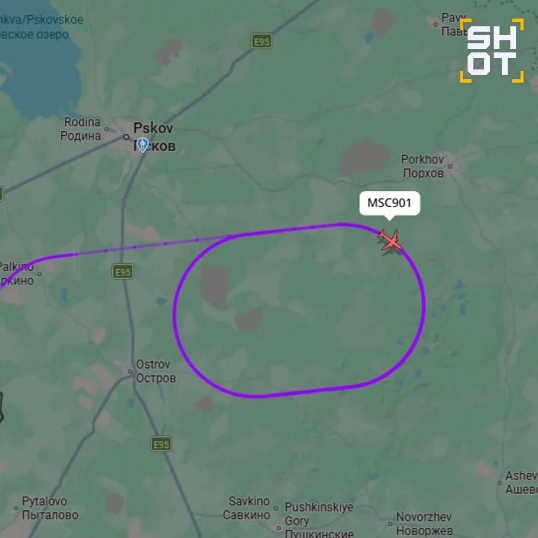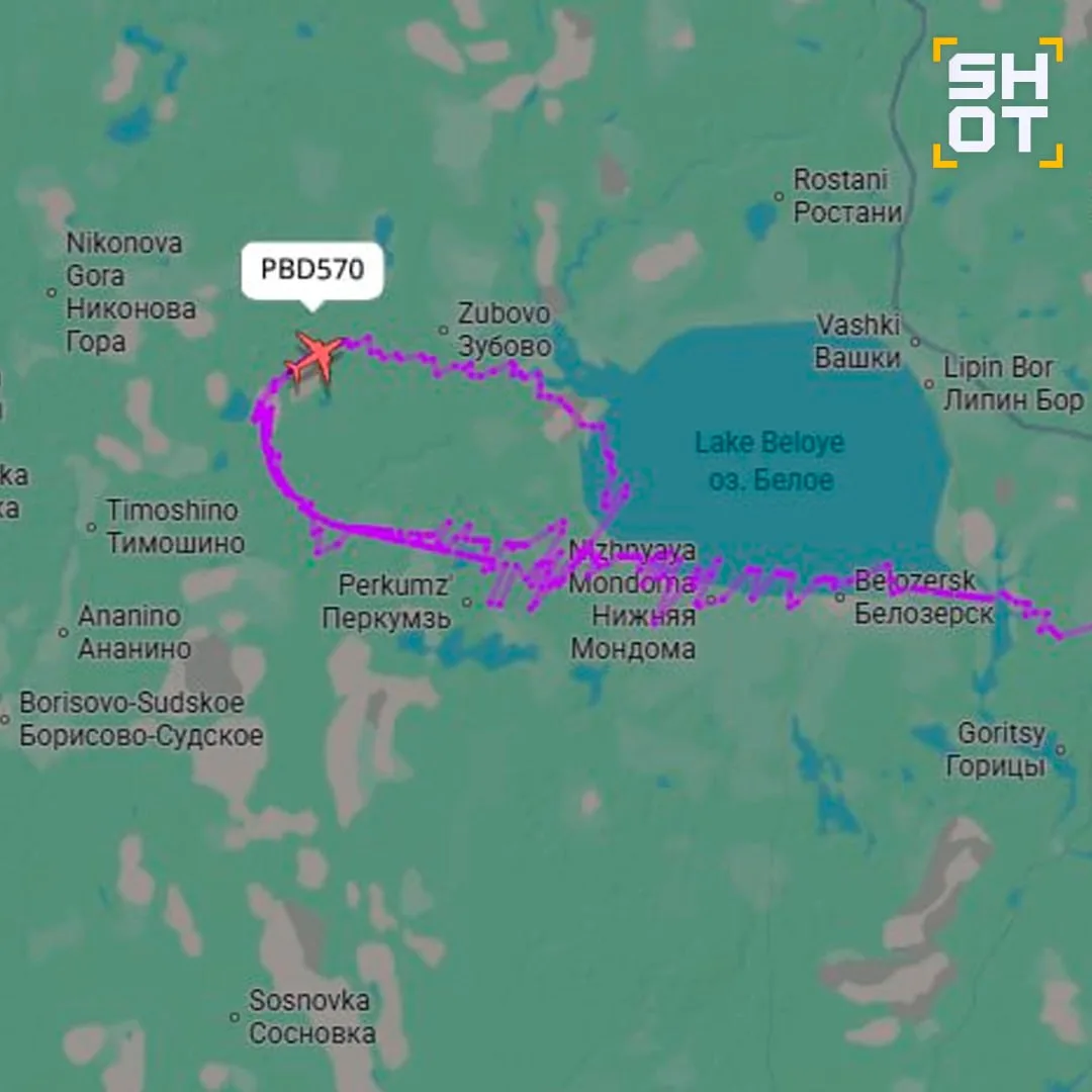 По данным SHOT, прямо сейчас самолёт авиакомпании Air Cairo из Шарм-эль-Шейха летает кругами (фото 2) в районе Пскова. Два борта «Победы» в Вологодской области (фото 3 и 4): один около озера Белое, другой в районе деревни Избоищи. Примерно там же находятся два самолёта авиакомпании «Россия» из Сургута и Перми (фото 5). Лайнеры не могут приземлиться из-за угрозы атаки БПЛА.