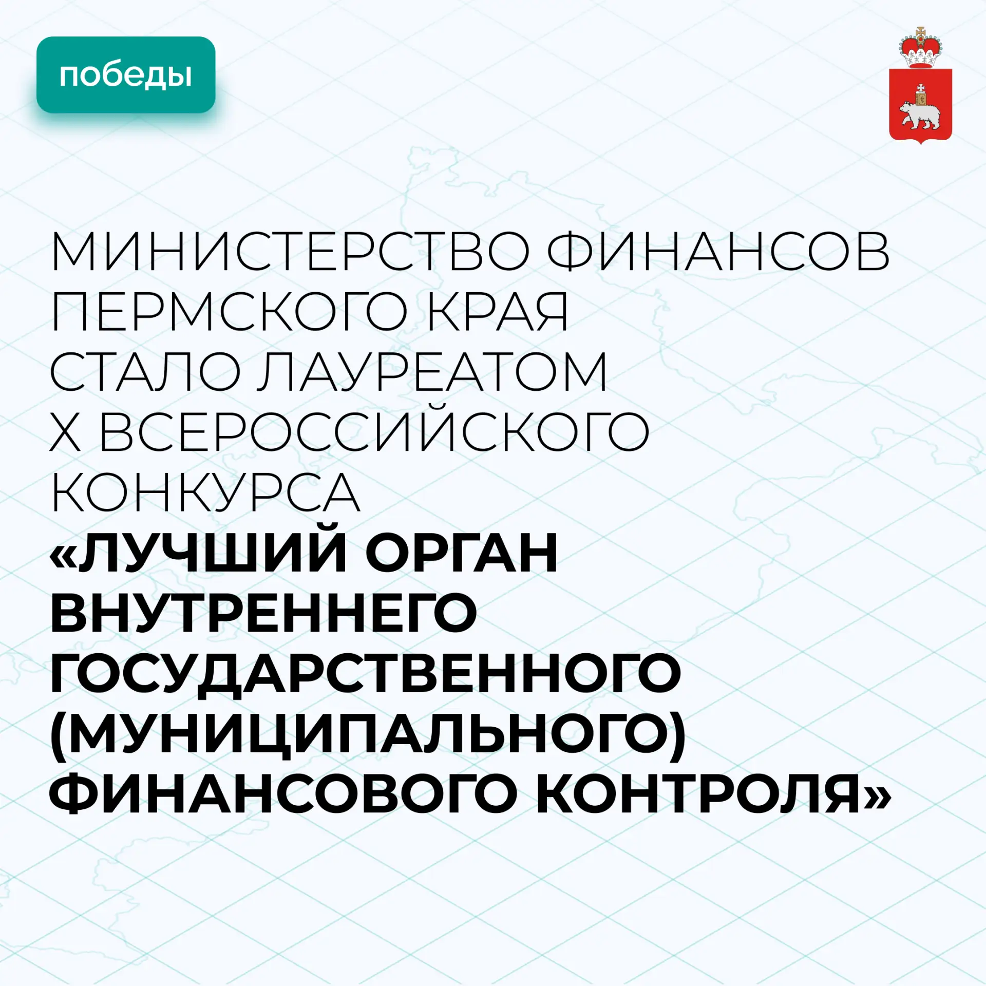 Министерство финансов Пермского края стало лауреатом X Всероссийского конкурса «Лучший орган внутреннего государственного (муниципального) финансового контроля» по итогам 2025 года. Регион отмечен в номинации «Эффективный контроль».