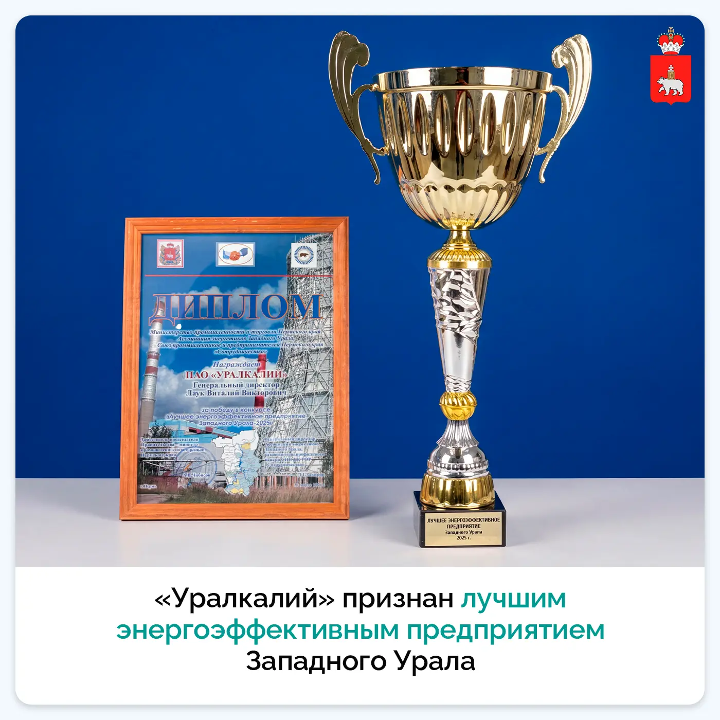 По итогам 2025 года «Уралкалий» признан лучшим энергоэффективным предприятием Западного Урала. Звание «Лучший энергетик Западного Урала» также получил главный энергетик компании Алексей Рюмкин.