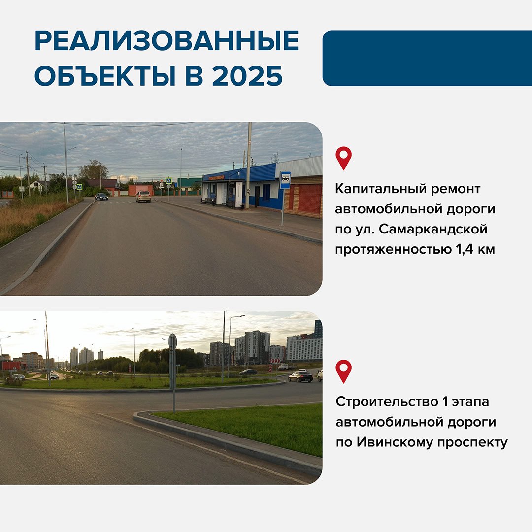 В прошлом году мы реализовали ключевые проекты в микрорайонах Ива и Погода. Проведен капитальный ремонт улицы Самаркандской, что позволило запустить по ней общественный транспорт. Также реализован первый этап Ивинского проспекта. Эти объекты улучшили транспортную доступность микрорайонов.