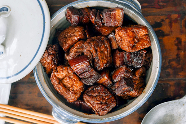 Красная тушеная грудинка — истинная классика китайской кухни. Это блюдо находит свое место на столах на протяжении многих лет, меняя только добавки (например, яйца и зелень), но сохраняя свою основную суть: карамелизация сахара и тушение в соевом соусе и рисовом вине Шаосин.