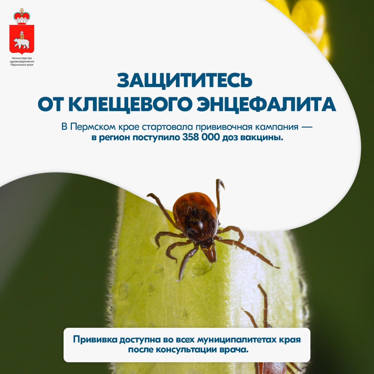 В Прикамье уже начался сезон активности клещей. В регион для иммунизации от клещевого энцефалита поступило 358 тысяч доз вакцины, рассказали в краевом Минздраве. Прививку можно сделать в прививочных пунктах на базах поликлиник по всему краю.