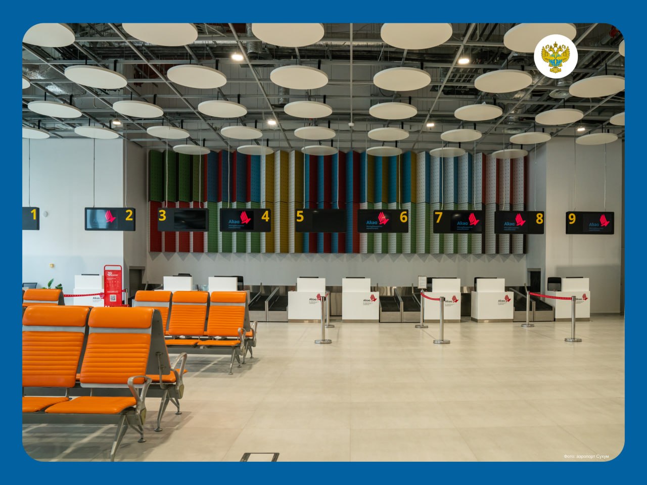 Общая площадь нового аэровокзала составляет около 5 тыс. кв. м, пропускная способность – до 400 пассажиров в час.