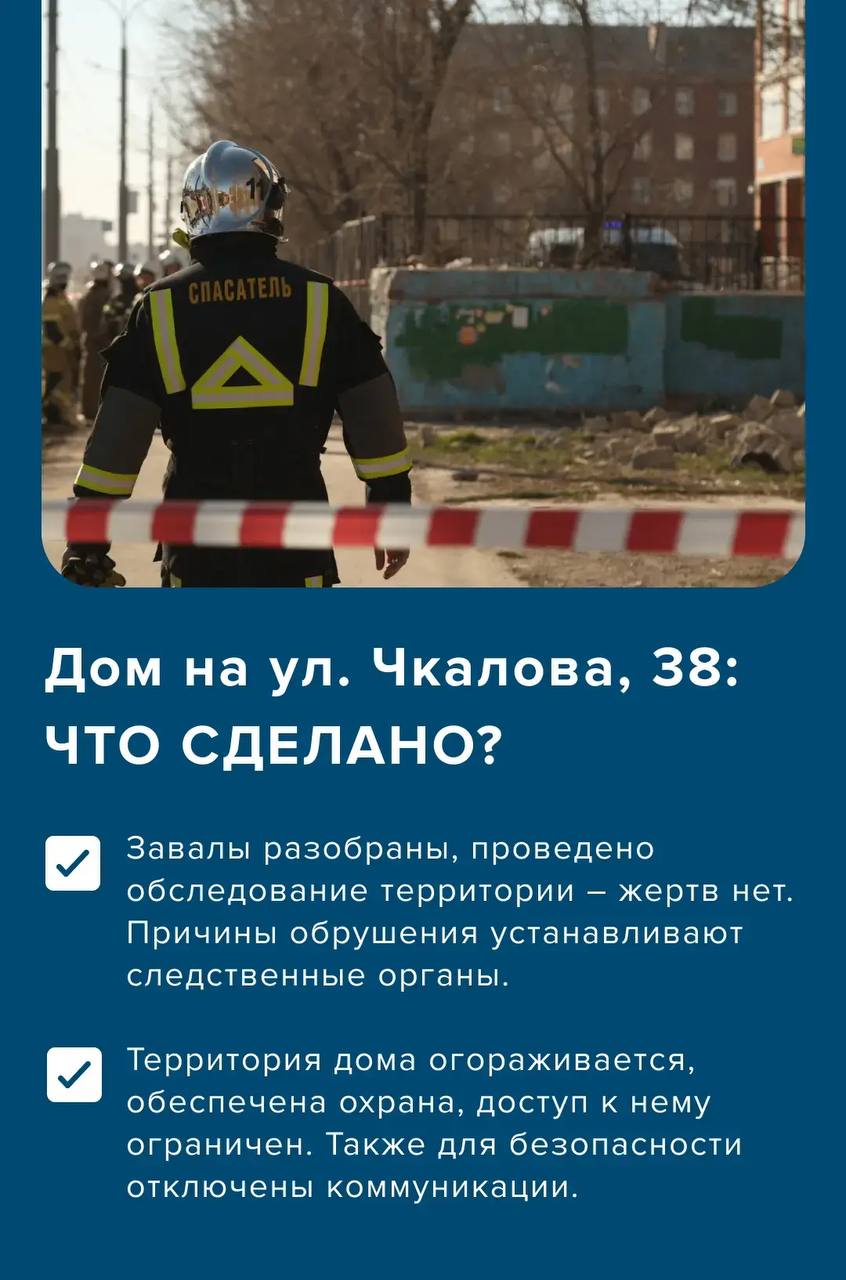 Завершены работы по разбору завалов на месте происшествия по ул. Чкалова, 38.