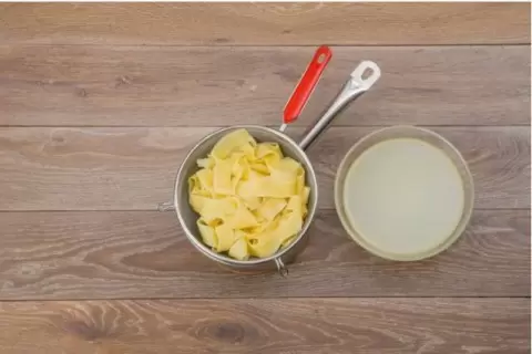 Шаг 1: Папарделле отварить в подсоленной кипящей воде на протяжении 7 минут. Затем откинуть на дуршлаг и сбрызнуть оливковым маслом.