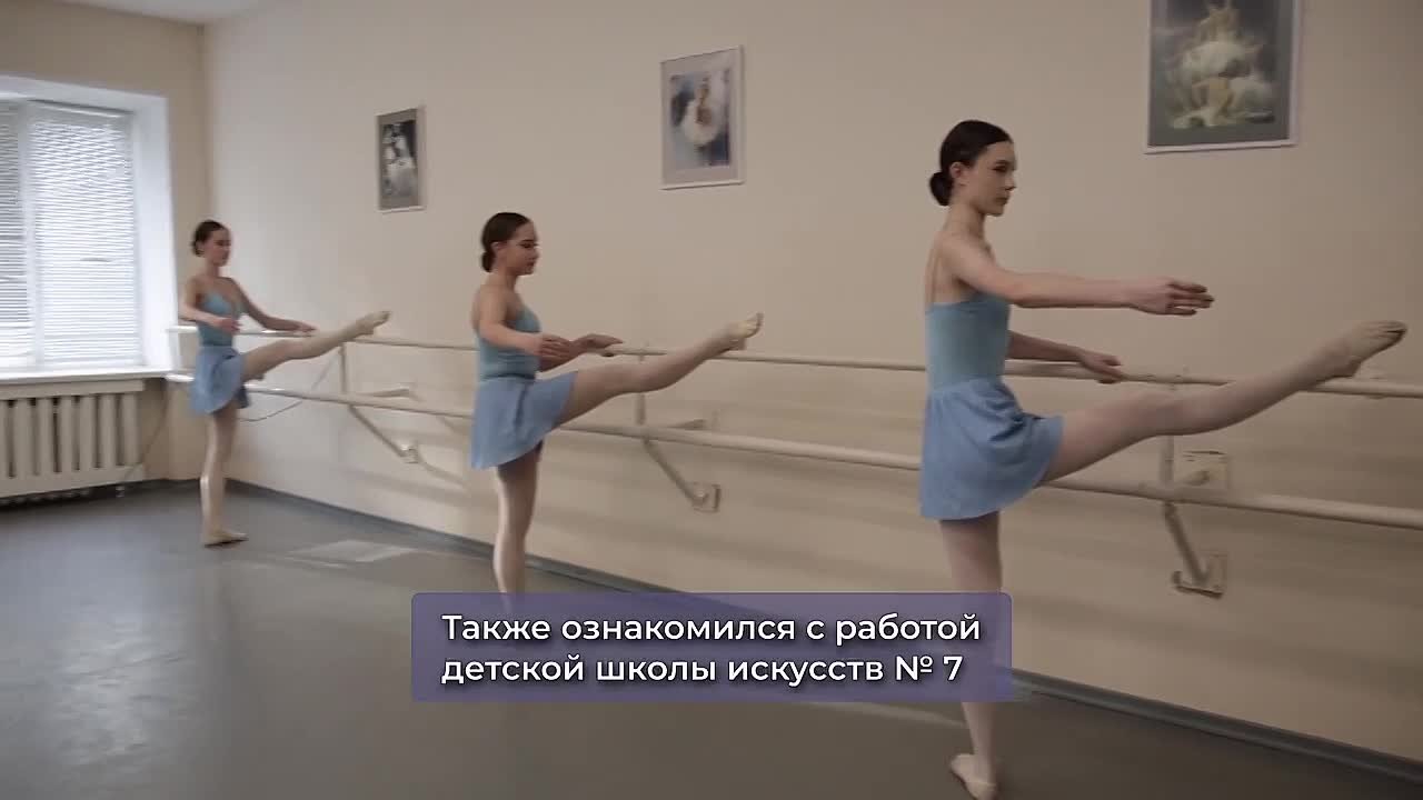 Также посетил детскую школу искусств № 7, где юные таланты под руководством педагогов изучают музыку, хореографию и изобразительное искусство. Высокий уровень преподавания подтверждают гран-при и дипломы лауреатов 1-й степени на международных и всероссийских конкурсах.