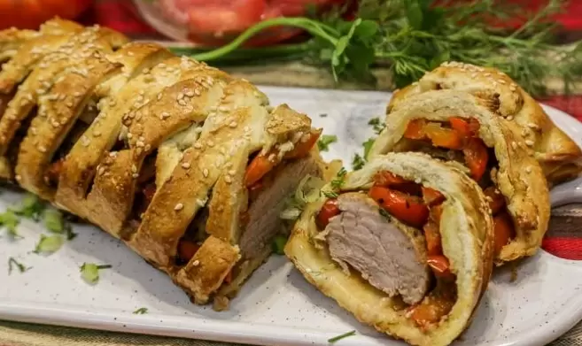 Представляем интересный способ приготовления свиной вырезки, завернутой в рассыпчатое тесто. Это простое блюдо, в котором сочная свинина прекрасно сочетает с жареным сладким перцем, подарит гармонию вкусов и ароматов. Главное, чтобы мясо осталось влажным, а тесто охватило его, образуя аппетитную корочку.