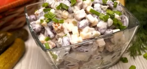 Вот и все! Вкусный и сытный салат готов, чтобы порадовать вас и ваших близких. Прекрасно подойдет как для повседневного, так и для праздничного стола. Приятного аппетита!