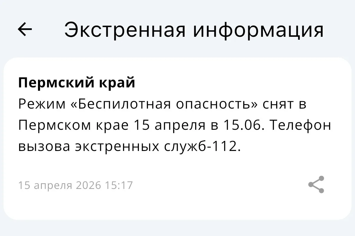 В Пермском крае снят режим «Беспилотная опасность».