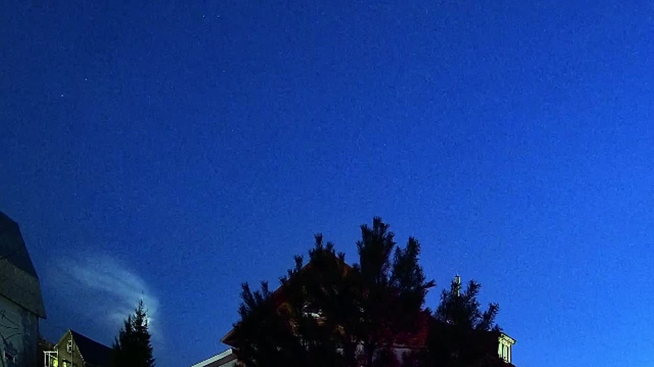 В кадр попал пролет ракеты-носителя «Союз-2.1Б» с военными спутниками, запущенной с космодрома Плесецк. Пуск произвел боевой расчет космических войск Воздушно-космических сил в интересах Минобороны России.