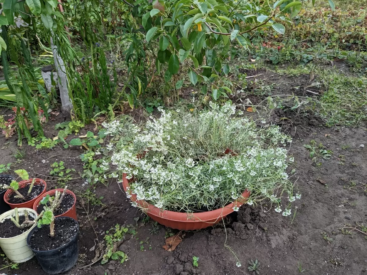 В тот год было предостаточно времени, и вот однажды, осенью, в процессе посадки тюльпанов, возникла идея добраться до алиссума и пересадить его в контейнер, чтобы продлить его цветение. Но глядя на старые фотографии, становится непонятно, зачем тратить силы на уже увядающее растение в преддверии завершения сезона.