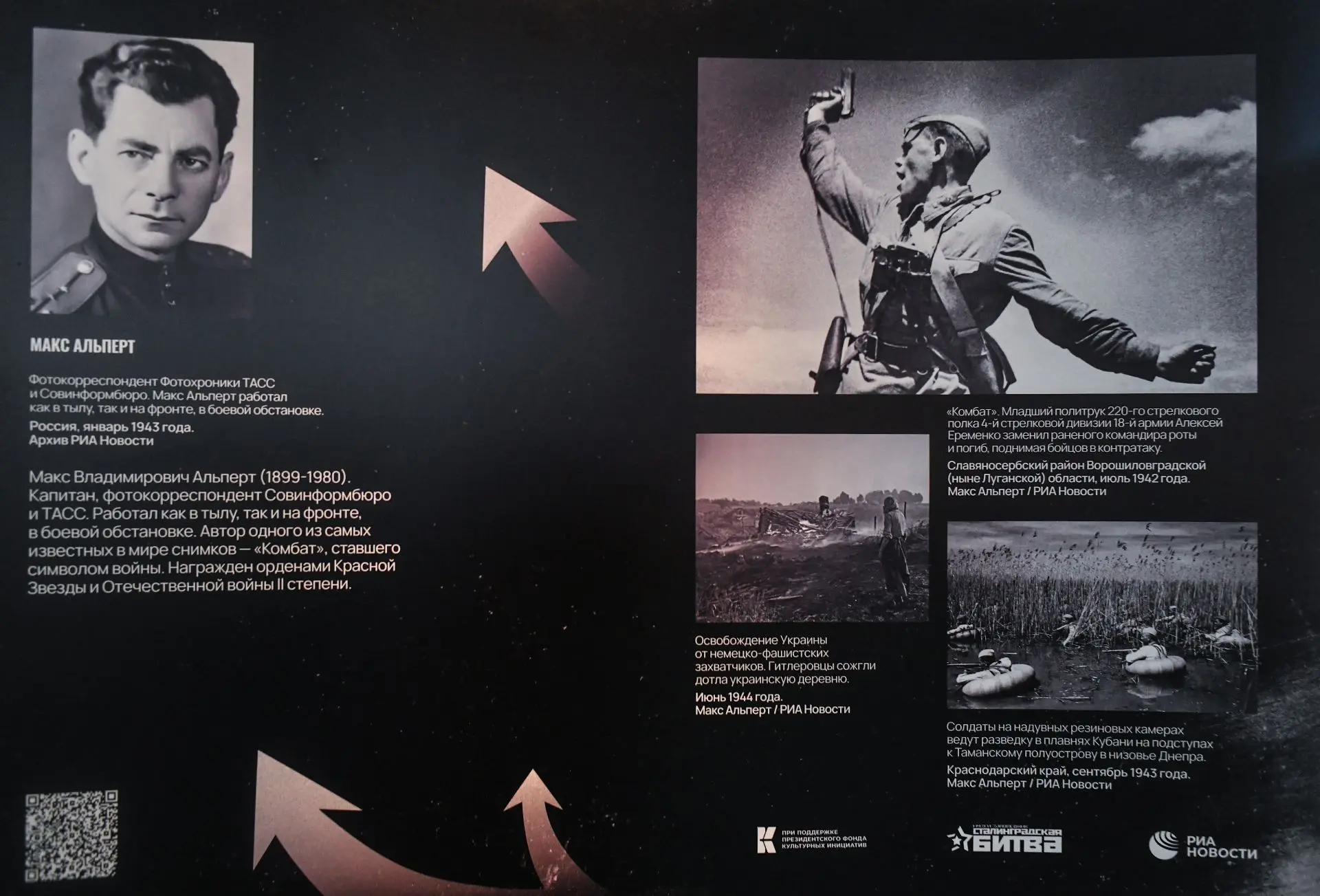 Экспозиция посвящена событиям Великой Отечественной войны, запечатленным в работах фронтовых корреспондентов.Также на выставке представлен цикл короткометражных фильмов, раскрывающий судьбы военных журналистов.