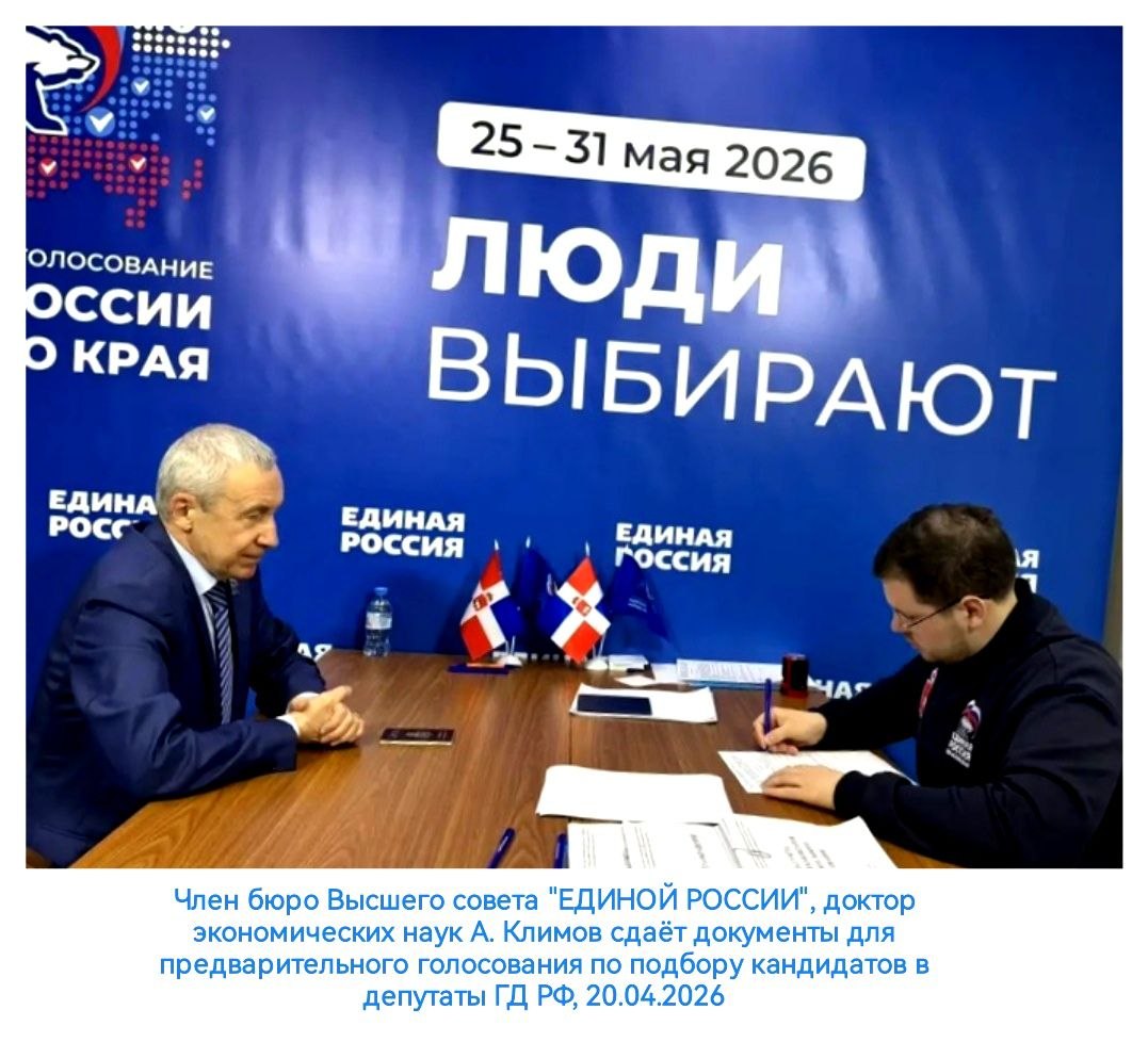 20 апреля лично сдал необходимые документы в Пермское региональное отделение "ЕДИНОЙ РОССИИ" для участия в предварительном голосовании по отбору кандидатов от нашей Партии на выборах в Госдуму РФ.