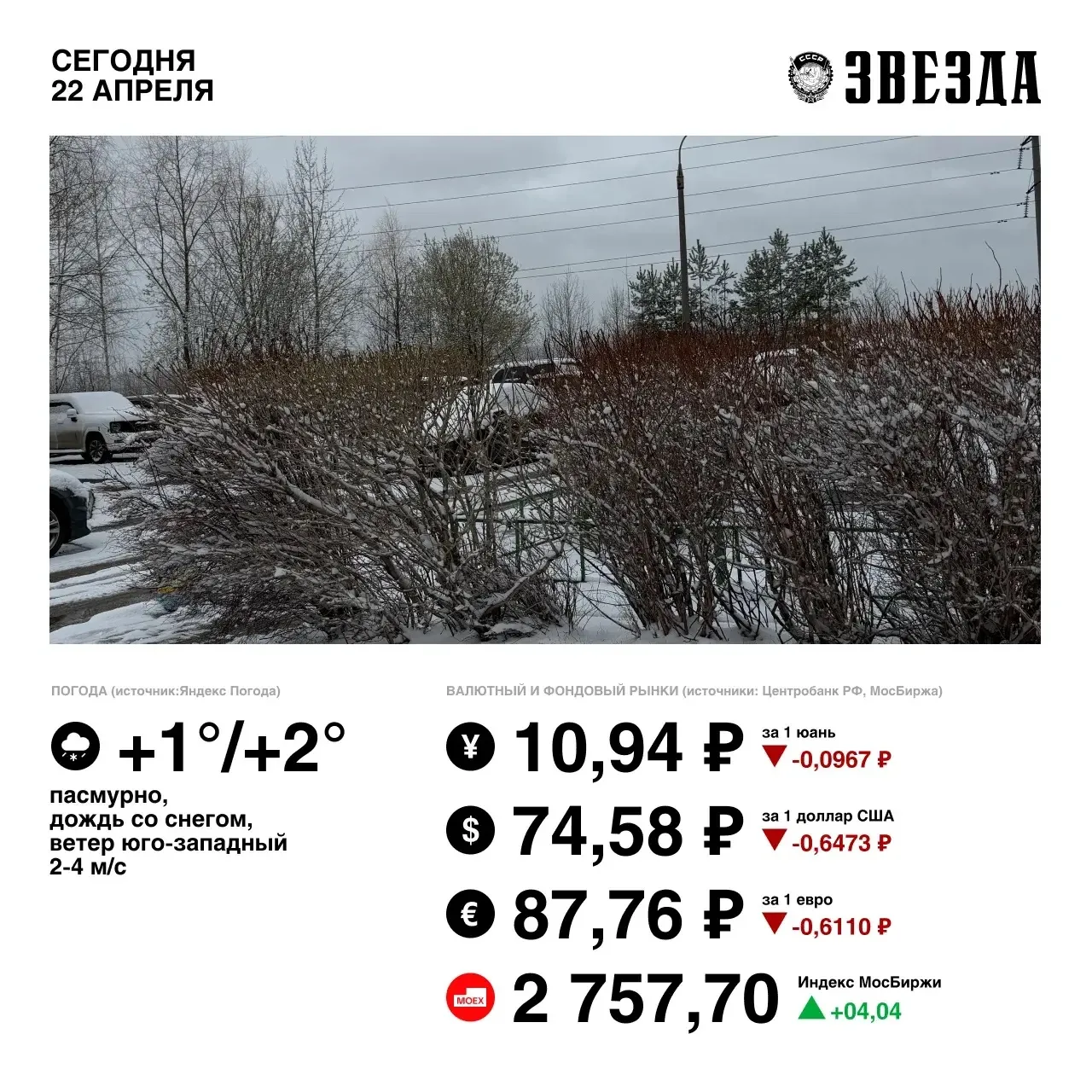 Сегодня вновь будет прохладно и пасмурно. Прогнозируется снег с дождем.