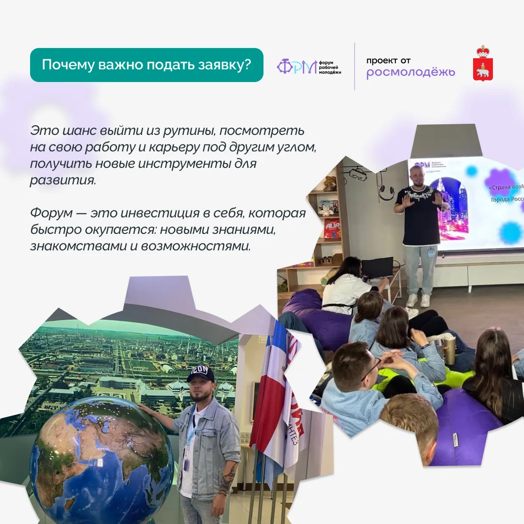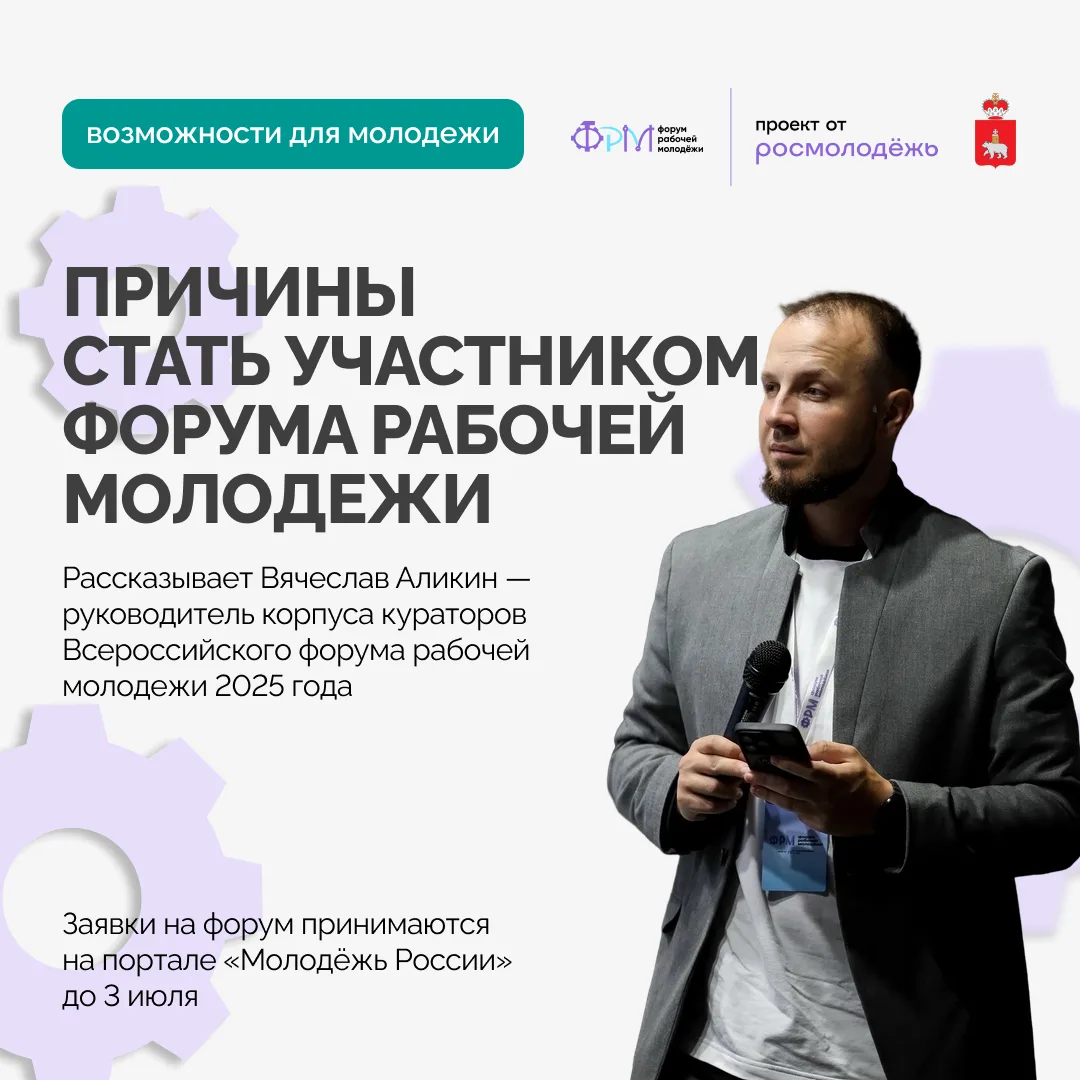 Приём заявок на Всероссийский форум рабочей молодежи ведется до 3 июля на портале «Молодежь России». Событие пройдёт в Пермском крае с 3 по 6 сентября.