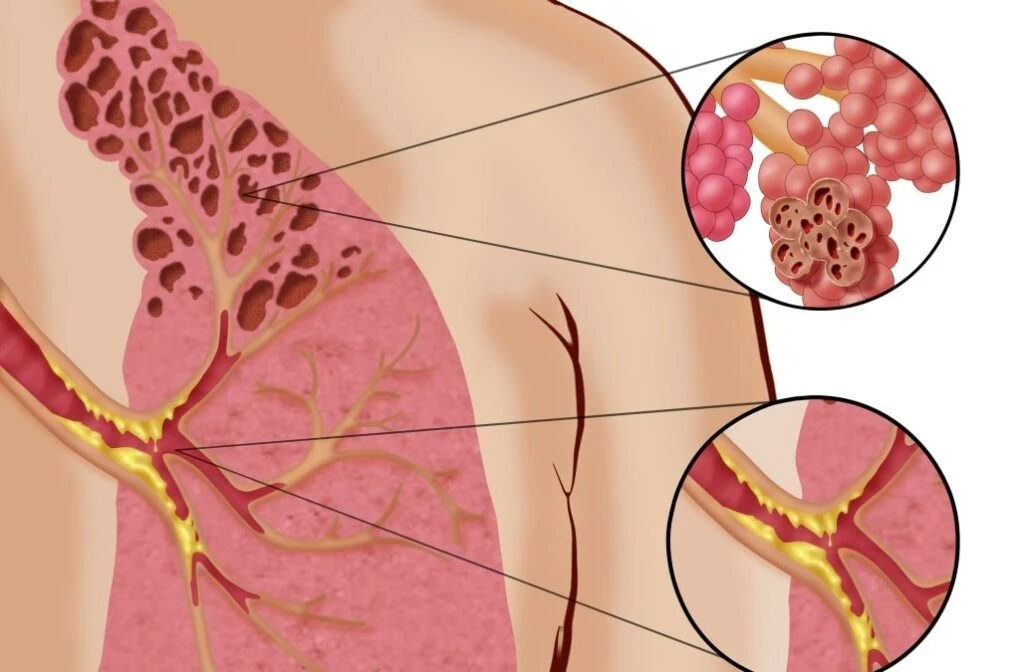 Симптомы: легкий кашель, одышка и температура, а в запущенных случаях — дыхательная недостаточность.