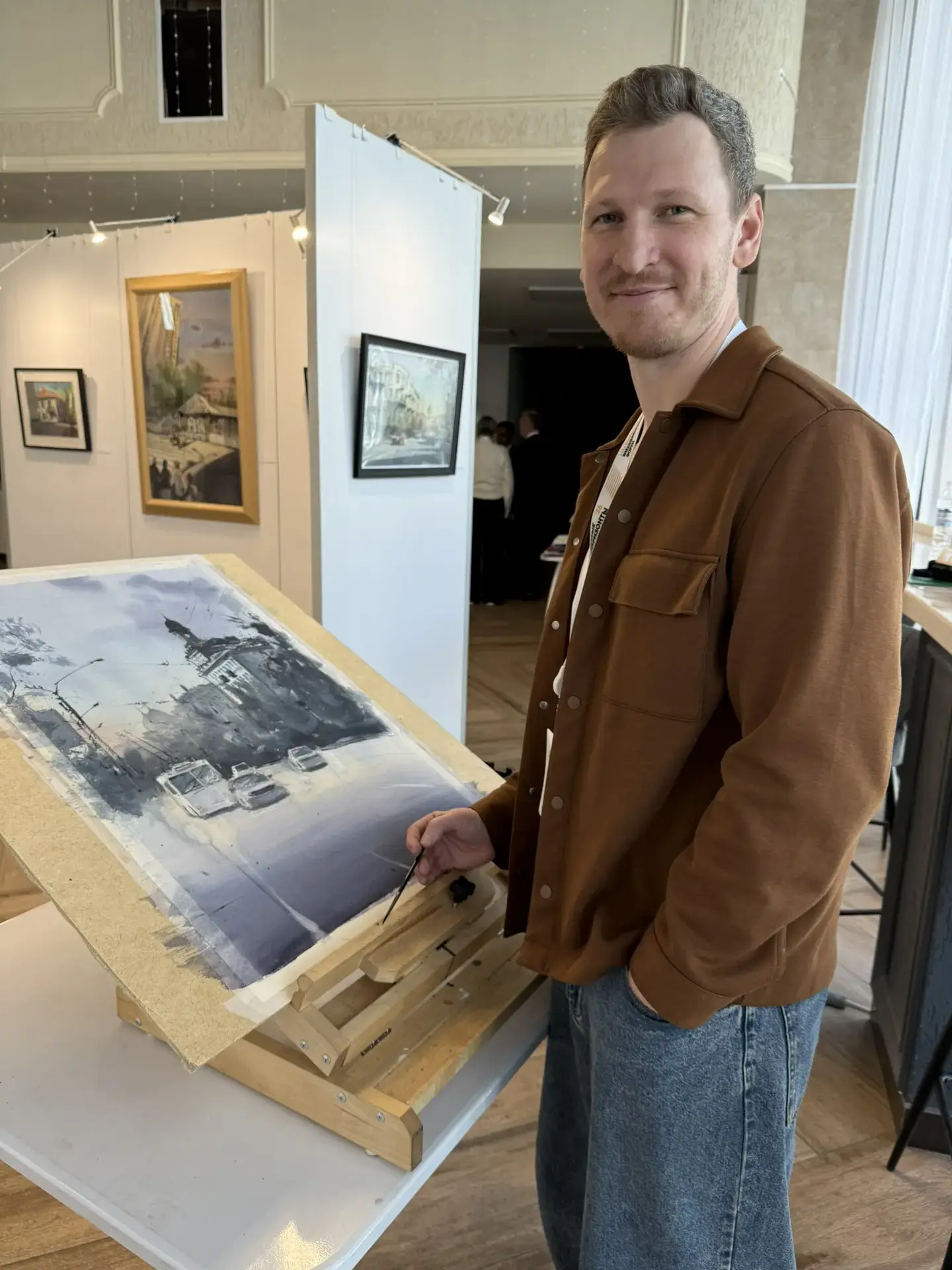 Акварелист Артём Тарасов на форуме «Новые горизонты» создает картину