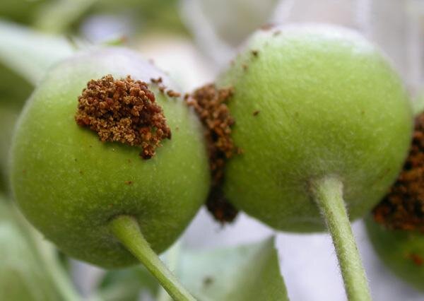 - Древесная зола: Для приготовления раствора в ведре воды разводится 2 литра древесной золы и добавляется 1 столовая ложка натертого хозяйственного мыла. Полученным раствором опрыскиваются листья, так как зола раздражает кожу вредителя и создает неблагоприятные условия для его существования. Весной следует также перекопать почву вокруг дерева и пролить её горячим зольным раствором, что поможет избавиться от зимующих личинок и одновременно удобрит растение.