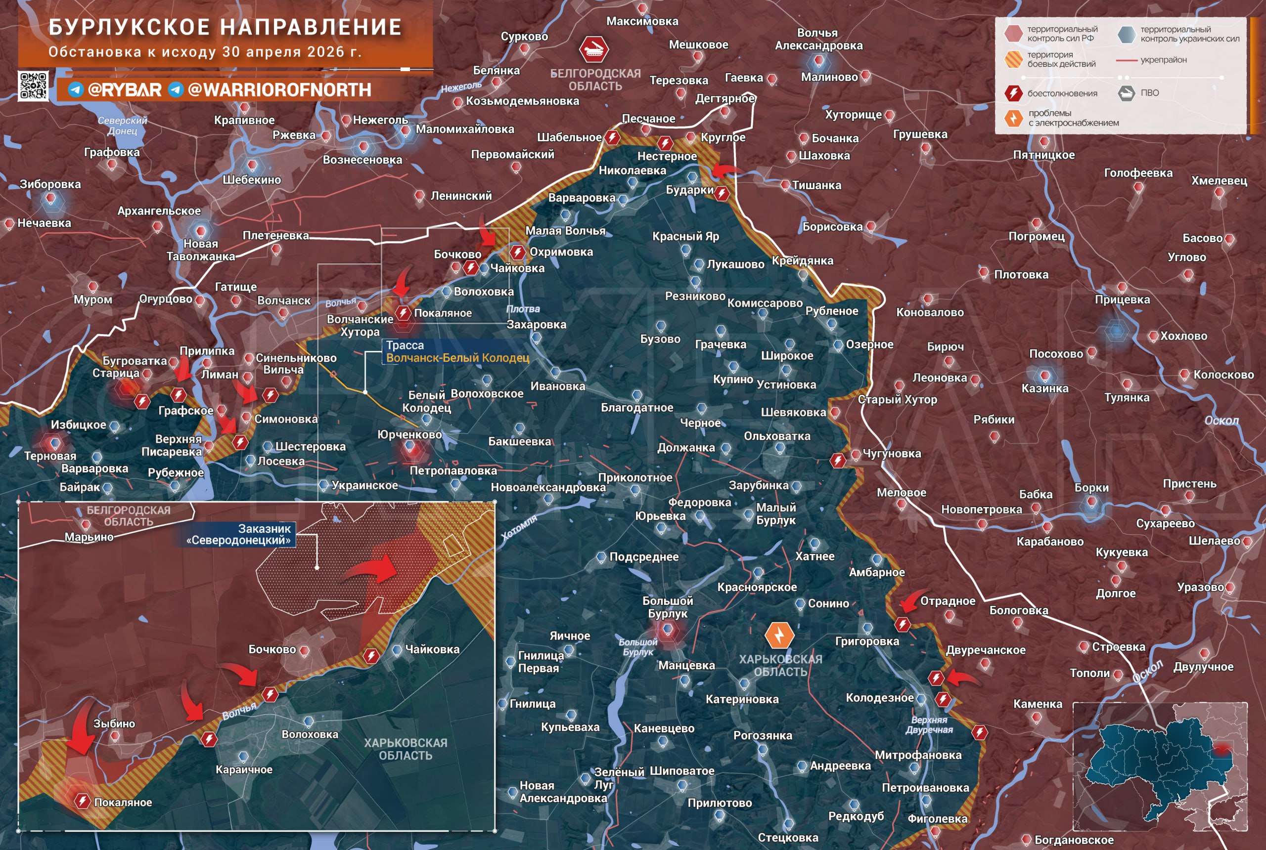 НаБурлукском направлении подразделения группировки войск «Север» ведут бои в окрестностях Верхней Писаревки. Со стороны Зыбино бойцы продвигаются на юг и заняли порядка половины населенного пункта Покаляное.